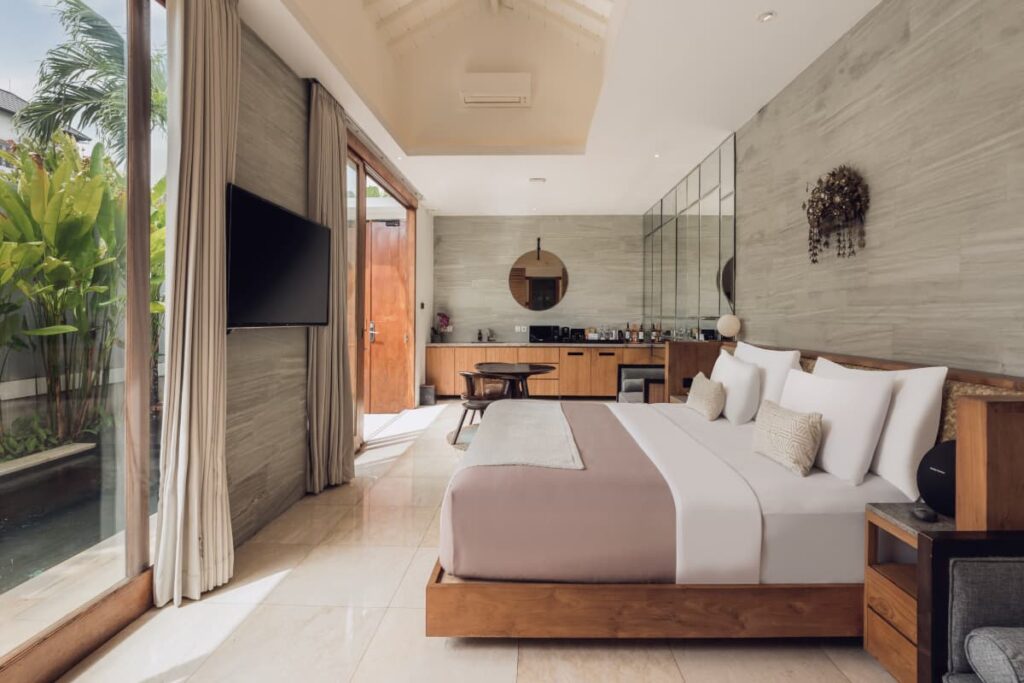レギャンとセミニャックの境界に静かに位置するこのヴィラは、アクセスが便利で、イ・グスティ・ングラ・ライ国際空港から車でわずか25分、
