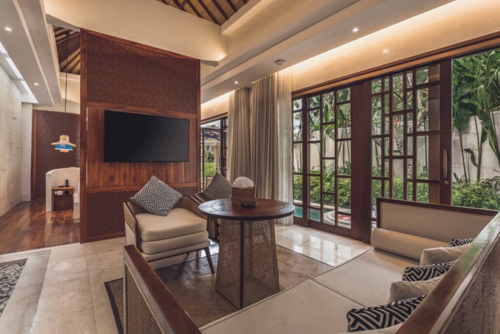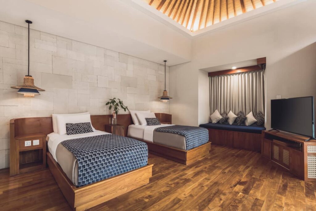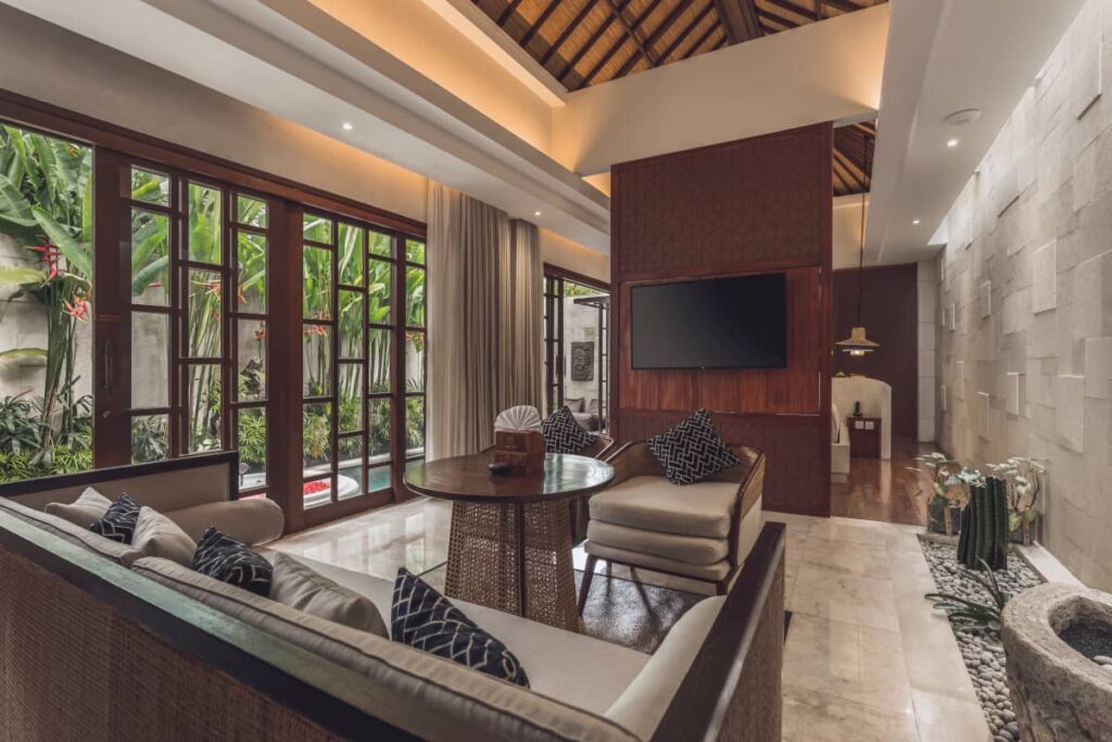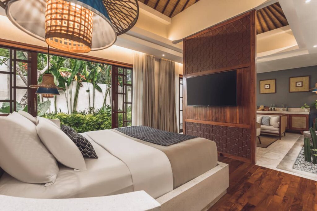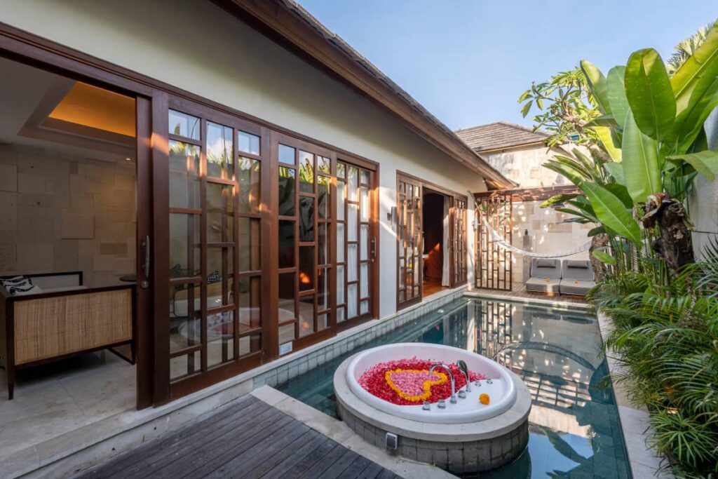 コンテンポラリーなバリデザインが特徴のアスヴァラヴィラは、プライベートプールとジャグジー付きのワンベッドルームヴィラを備え、バリでのハネムーン旅行中に快適に過ごせるようになっています。